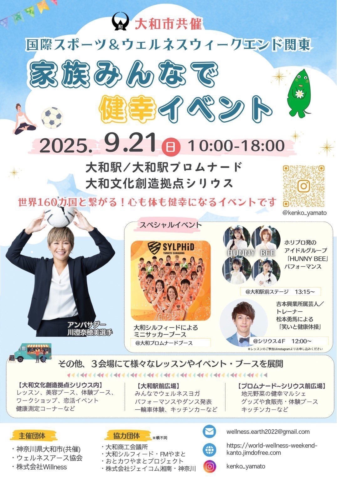 2025/08/24 EVENT 9/21(日)「家族みんなで健幸イベント」出演決定! ツイート シェア 大和市共催 国際スポーツ&ウェルネスウィークエンド関東 「家族みんなで健幸イベント」出演決定! 是非お越しください! 日程:2025年9月21日(日) 時間:13時15分頃~予定 場所:大和駅前ステージ 出演メンバー:米倉れいあ・藤ゆりな、リコ、吉沢凛音 詳細はこちら https://world-wellness-weekend-kanto.jimdofree.com/ 一覧へ戻る 前の記事へ